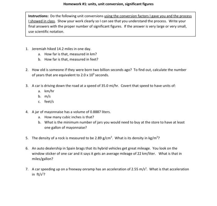 Solved Homework 1 Units Unit Conversion Significant Chegg Com